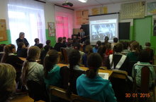 В связи с началом международной акции "Марш парков-2015" и празднования Дня защитников Отечества в школе прошла встреча с директором ГПКЗ "Степной" Динмухаметовым Ф.Н. и представителями МВД РФ по Лениногорскому району Заббровой И.Н. и Утешевой А.К.