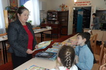 Сегодня учащиеся 1 классов вновь посетили сельскую библиотеку, где продолжали занятия по Культурному дневнику./1 нче сыйныф укучылары "Мәдәният көндәлеге" буенча эшләүләрен дәвам итеп, авыл китапханәсенә бардылар.
