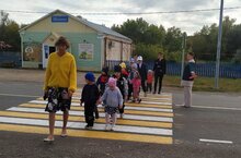 Ходили на экскурсию по нашему селу и уточняли знания детей об элементах дороги (проезжая часть, пешеходный переход, тротуар, о движении транспорта). Знакомили с дорожными знаками: «Пешеходный переход», «Дети».