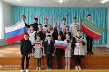 25 апреля в актовом зале школы прошло торжественное мероприятие "Поднятие флагов РФ и РТ". Учащиеся исполнили Гимны РФ и РТ