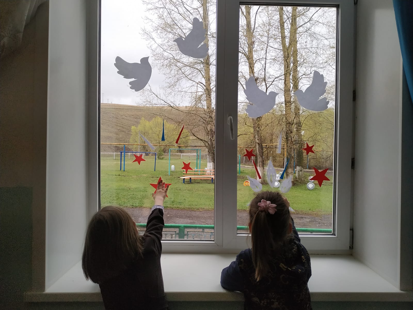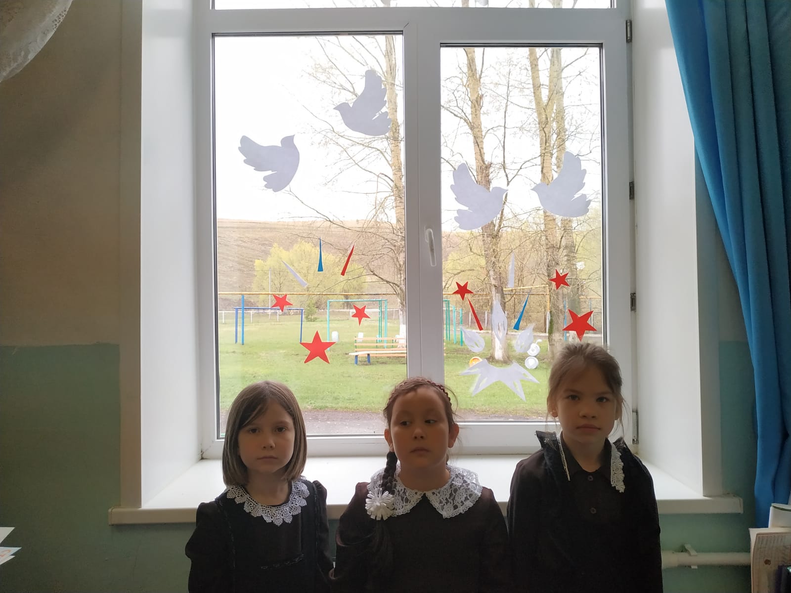 Учащиеся Сугушлинской школы участвуют в акции "Окна Победы".