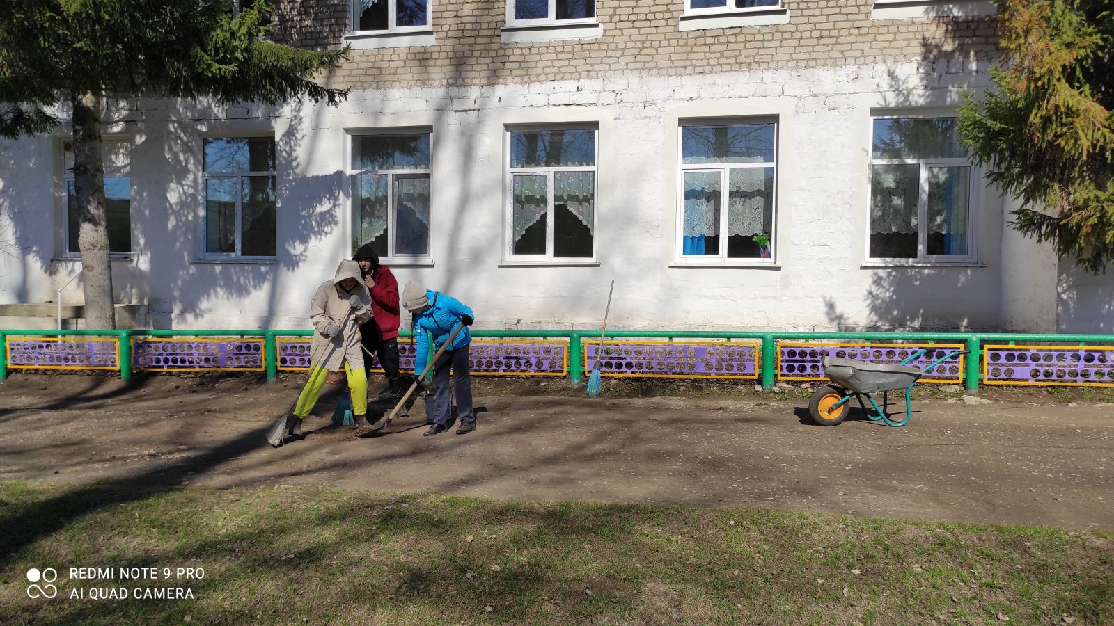 23 апреля учащиеся Сугушлинской школы вместе с учителями очистили территорию школы от мусора, прошлогодней листвы и веток.