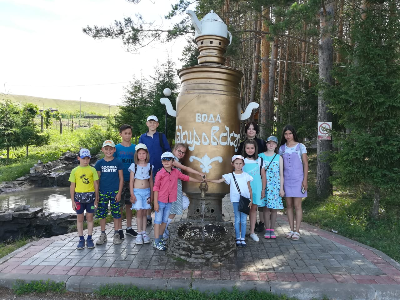 Сегодня дети пришкольного лагеря "Родничок" в сопровождении воспитателей посетили территорию санатория "Бакирово". Дети посмотрели зоопарк санатория, попили целебной воды из минеральных источников, поиграли на детской площадке.