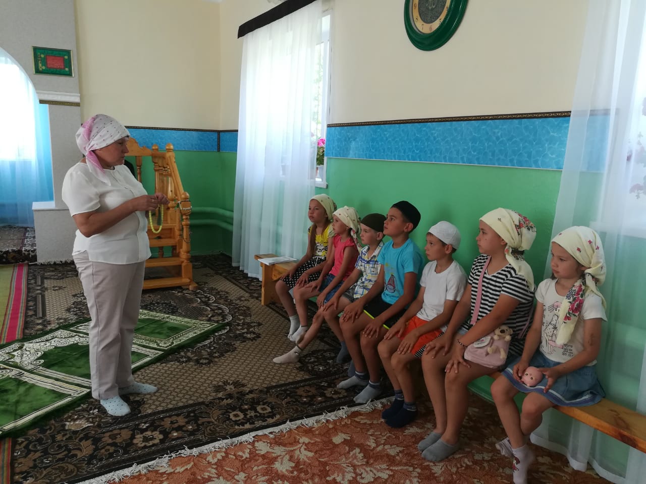 Сегодня дети пришкольного лагеря побывали в мечети с.Сугушла. Ребят провели по всем комнатам мечети, рассказали об Исламе, священной книге - Коран, ответили на интересующие детей вопросы.