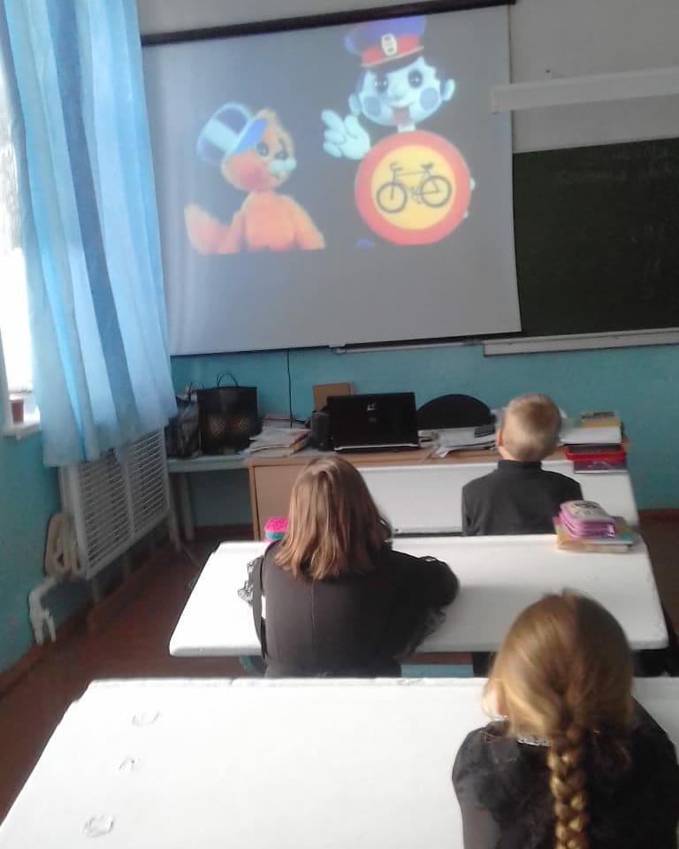 Сегодня отмечается Всероссийский день Безопасности дорожного движения. Для учащихся начальных классов, отряд ЮИД организовал просмотр мультфильма "Котенок Женя и правила дорожного движения". Руководитель отряда провел беседу о дорожных знаках и о правилах перехода дорог.