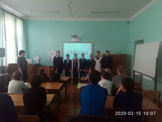 Учащимися 5-8 класса была подготовлена и продемонстрирована литературно-музыкальная композиция "Эхо Афганской войны". Дети прочитали стихотворения и спели песни, посвященные войне.