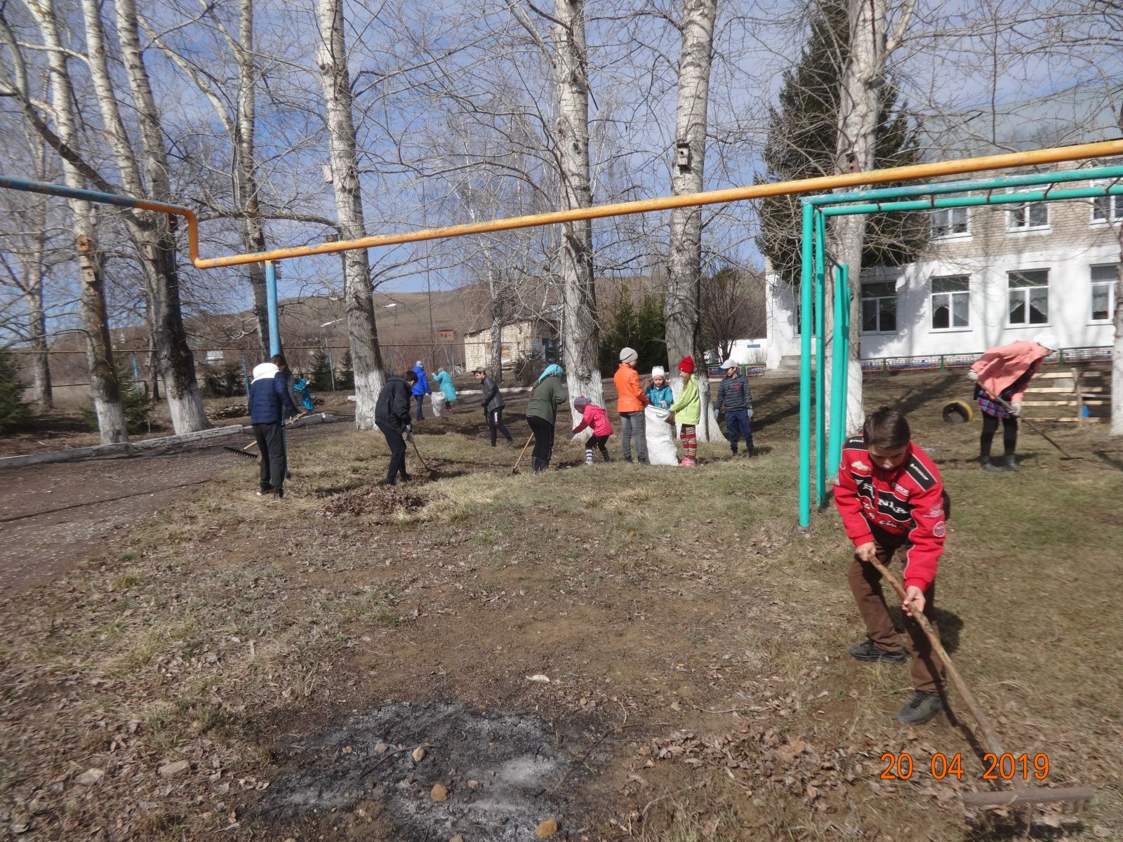 В рамках Дней защиты от экологической опасности и Двухмесячника по санитарной очистке территории, 20 апреля в школе прошел экологический субботник. Силами учащихся, учителей, тех.работников, территория школы была очищена от прошлогодней травы и листвы. Учащиеся не только очищали территорию, но смогли наблюдать за весенними изменениями в деревьях, кустарниках и травах. Во время отдыха была проведена беседа на тему "Не жги сухую траву - это источник пожара!". Ученики были ознакомлены материалами СМИ о действующих пожарах на Земле.