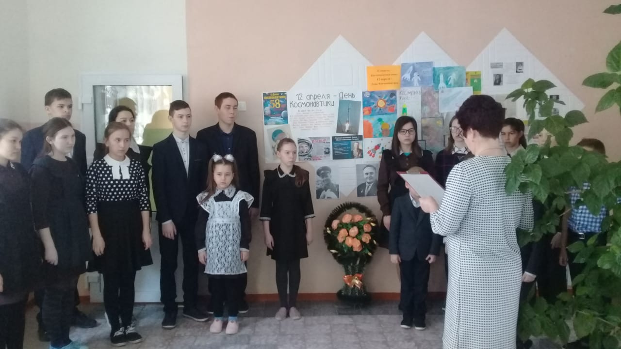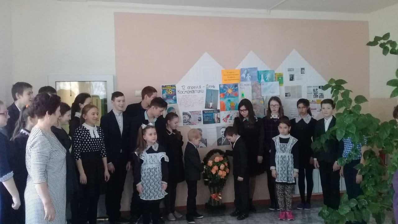 Сегодня, в рамах респубиканской акции "108 минут вместе с Юрием Гагариным!», в школе прошел единый урок "Космос - это мы". Урок начался с показа видеофильма "1961 год первый человек в космосе Юрий Гагарин", далее библиотекарь Сафаралиева Л.А. презентовала книгу "Слово о сыне" автором которой является мать Первого космонавта Анна Тимофеевна Гагарина. Учитель физики Вафина Л.А. совместно с худ. руководителем сельского ДК провели интерактивный урок "Космос - это мы", урок сопровождался показом презентации и викториной. ЗДВР Хабибуллина Л.Т. подвела итоги конкурса рисунков ко Дню космонавтики. В конце урока учащиеся возложили венок к портретам Ю.А.Гагарина и С.П.Королева