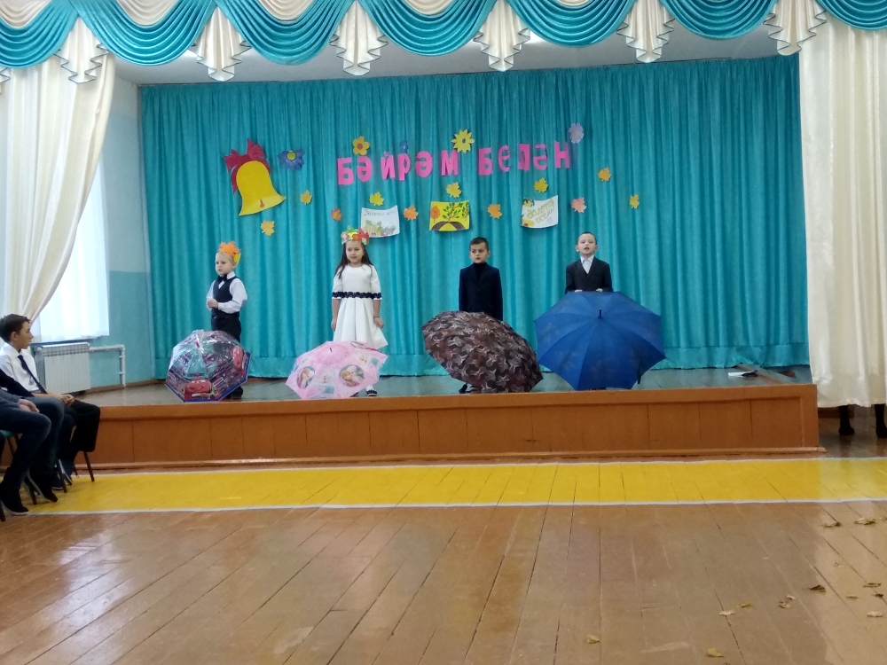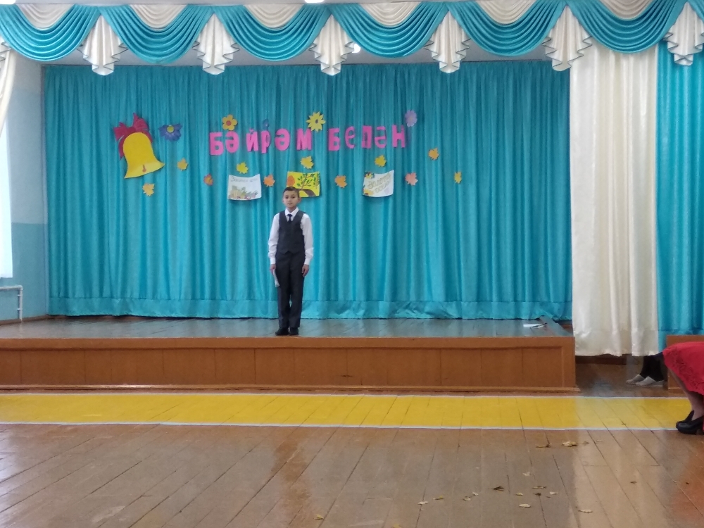 26 октября в нашей школе прошёл традиционный праздник "Осенний бал". Учащиеся выступили с концертными номерами. Была организована выставка поделок из овощей, а также овощей-гигантов. После концертной программы были организованы конкурсы, викторины, татарские народные игры и танцы. По окончанию мероприятия во всех классах прошли чаепития.