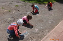 После завтрака ребята участвовали в конкурсе рисунков на асфальте.