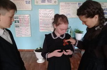 Учащиеся нашей школы раздавали бесплатно Георгиевские ленточки в награду за правильные ответы на вопросы, касающиеся истории этого символа, его правильного ношения или по истории России.