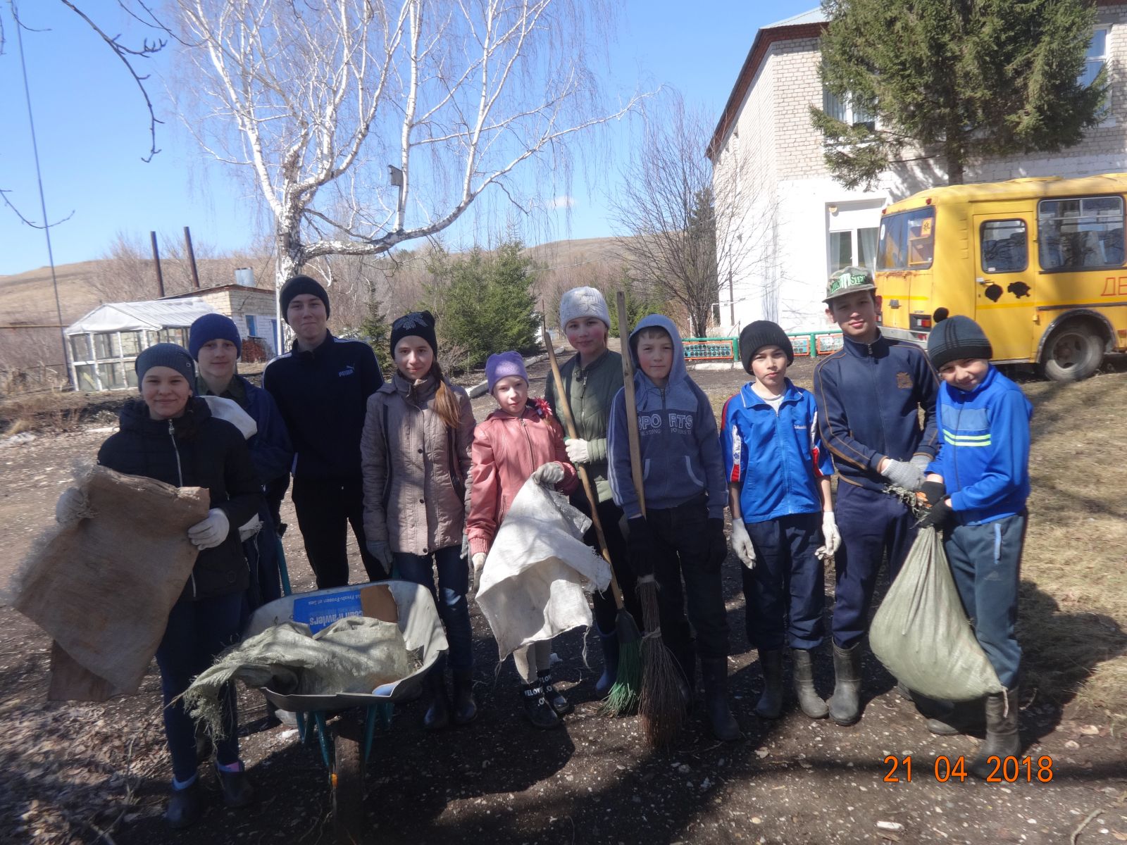 21 апреля школа приняла участие во Всероссийском экологическом субботнике, которая была посвящена Международной акции "День Земли". Это мероприятие началось с презентации "День Земли", представленной Гаязовой А. Учитель биологии Ахметова Ф.А. рассказала о глобальных проблемах Земли, и о путях их решения. Практическая часть акции была проведена на территории школы: были убраны прошлогодние травы, листья, приведены в порядок клумбы, был раскидан снег. На прилегающей к школе территории, вдоль дорог, был собран мусор. Акцию ребята продолжили у себя дома.