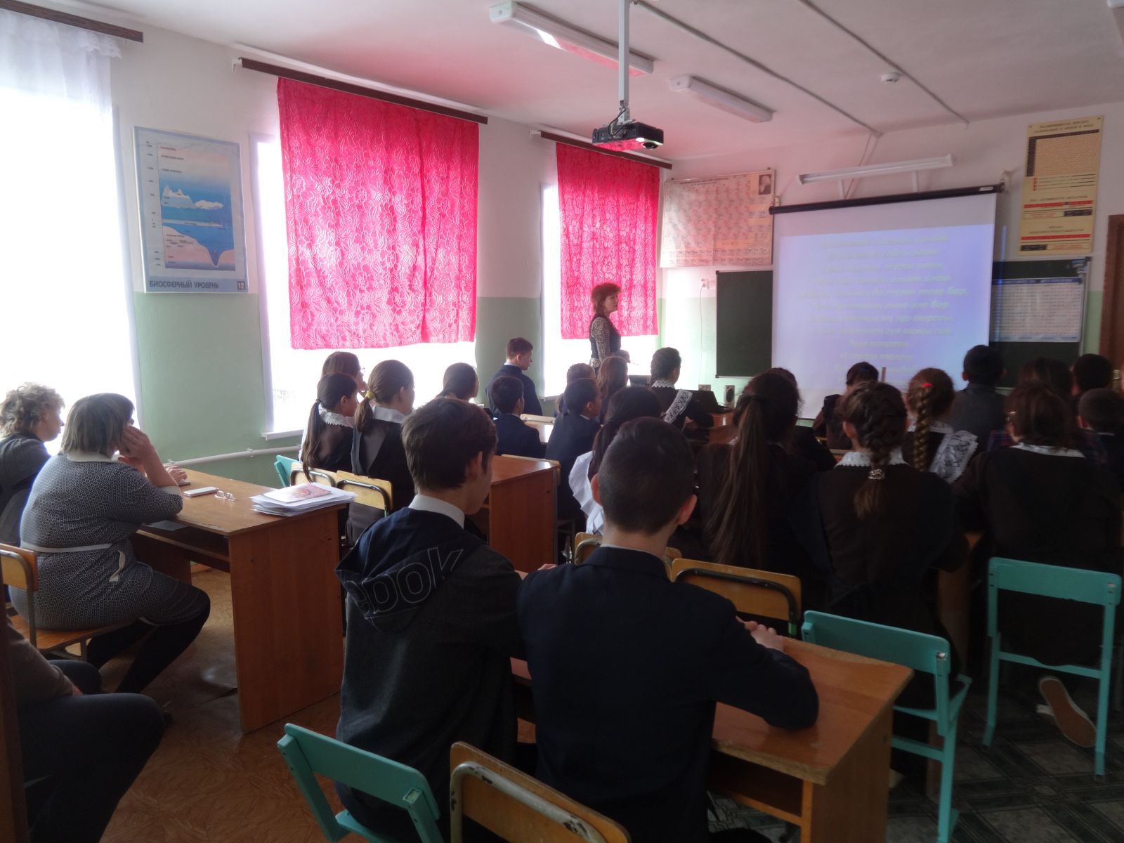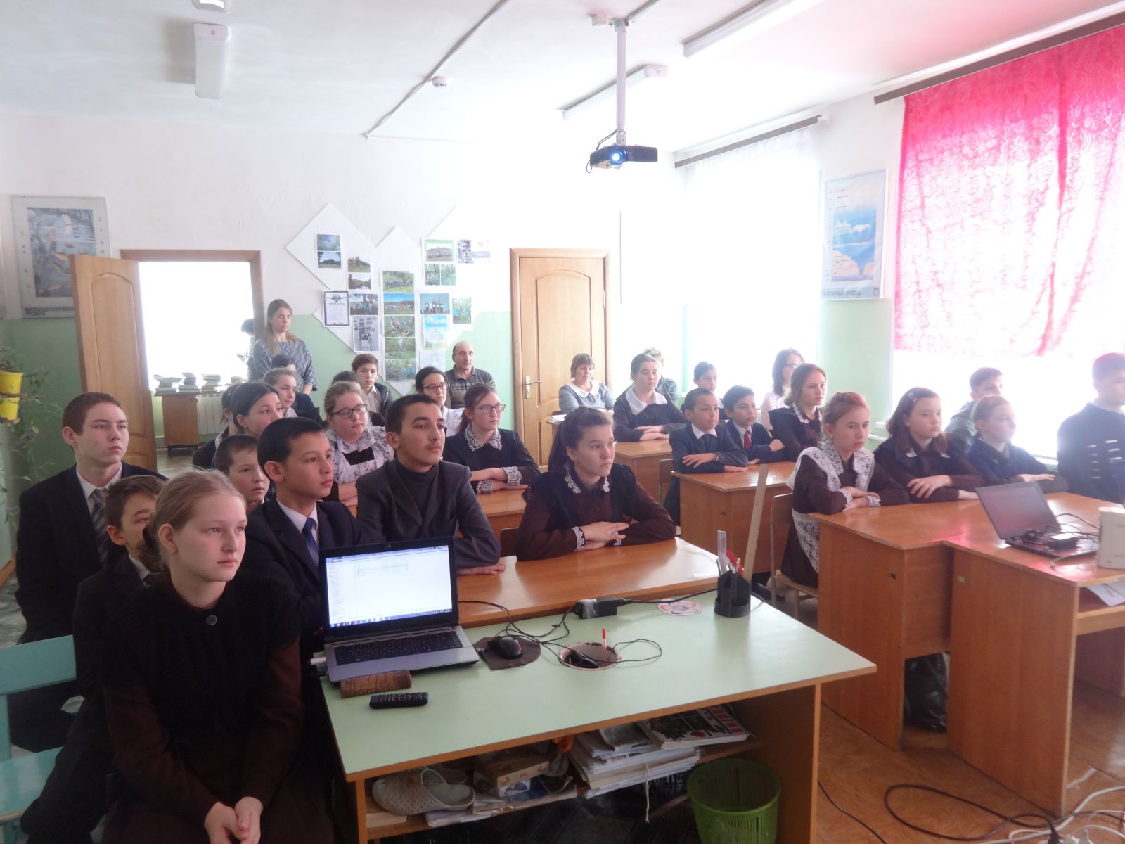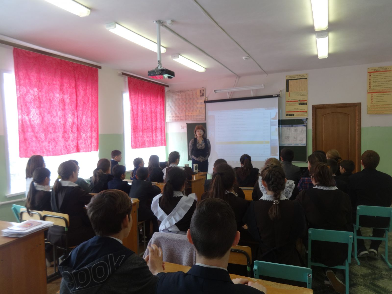 Традиционно, каждую среду в нашей школе проходят экологические уроки. Сегодняшний урок был посвящен Международному дню рек, в рамках весенней недели добра. Учитель биологии и экологии Ахметова Ф.А. рассказала учащимся об актуальных на сегодняшний день экологических проблемах, об охране водных ресурсов Республики. Урок сопровождался просмотром презентации.