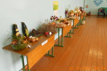 Бүген мәктәптә "Уңыш-2017" күргәзмәсе узды. Һәр класс "Иң мул" өстәл бәйгесендә катнашты. Балалар табигый материаллардан поделкалар, үзләре үстергән кызыклы формадагы , гигант булган яшелчәләрен алып килделәр. Иң актив катнашучыларны Көз кызы Сөмбелә билгеләп узды.