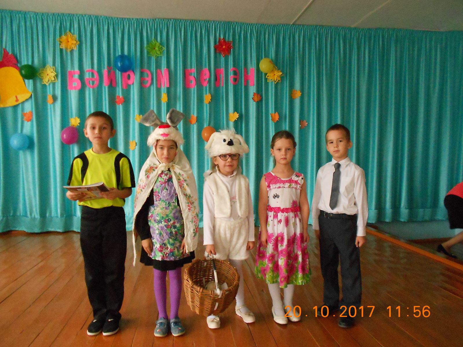 Бүген мәктәптә Көзге бал, көз бәйрәме узды. Балалар катнашында "Зифа әбидә кунакта" дип исемләнгән тамаша, Сөмбеләне каршы алу,концерт номерлары, уеннар, чәй эчү оештырылды.