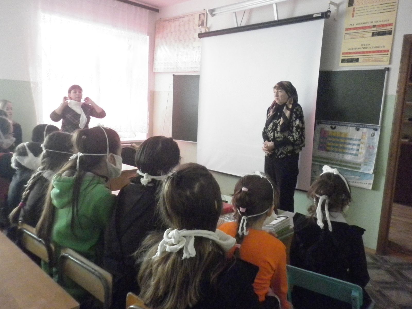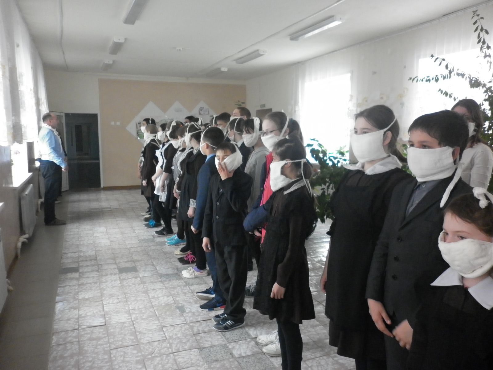 Сегодня в школе прошли командно-штабные учения. В рамках которого, были организованы тренировочные занятия по эвакуации учащихся и персонала школы по сигналу "воздушная тревога" и "химическая тревога" по использованию средств индивидуальной защиты, проверке и уточнения маршрутов эвакуации. В ходе мероприятия выявлено, что у каждого ученика и персонала имеются ватно-марлевые повязки. Эвакуация прошла оперативно, за короткое время все покинули опасную зону.
