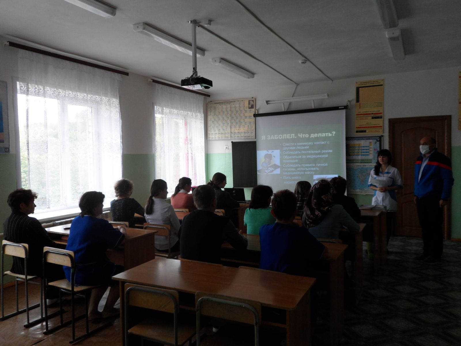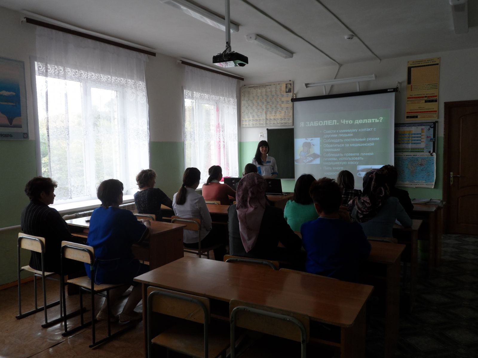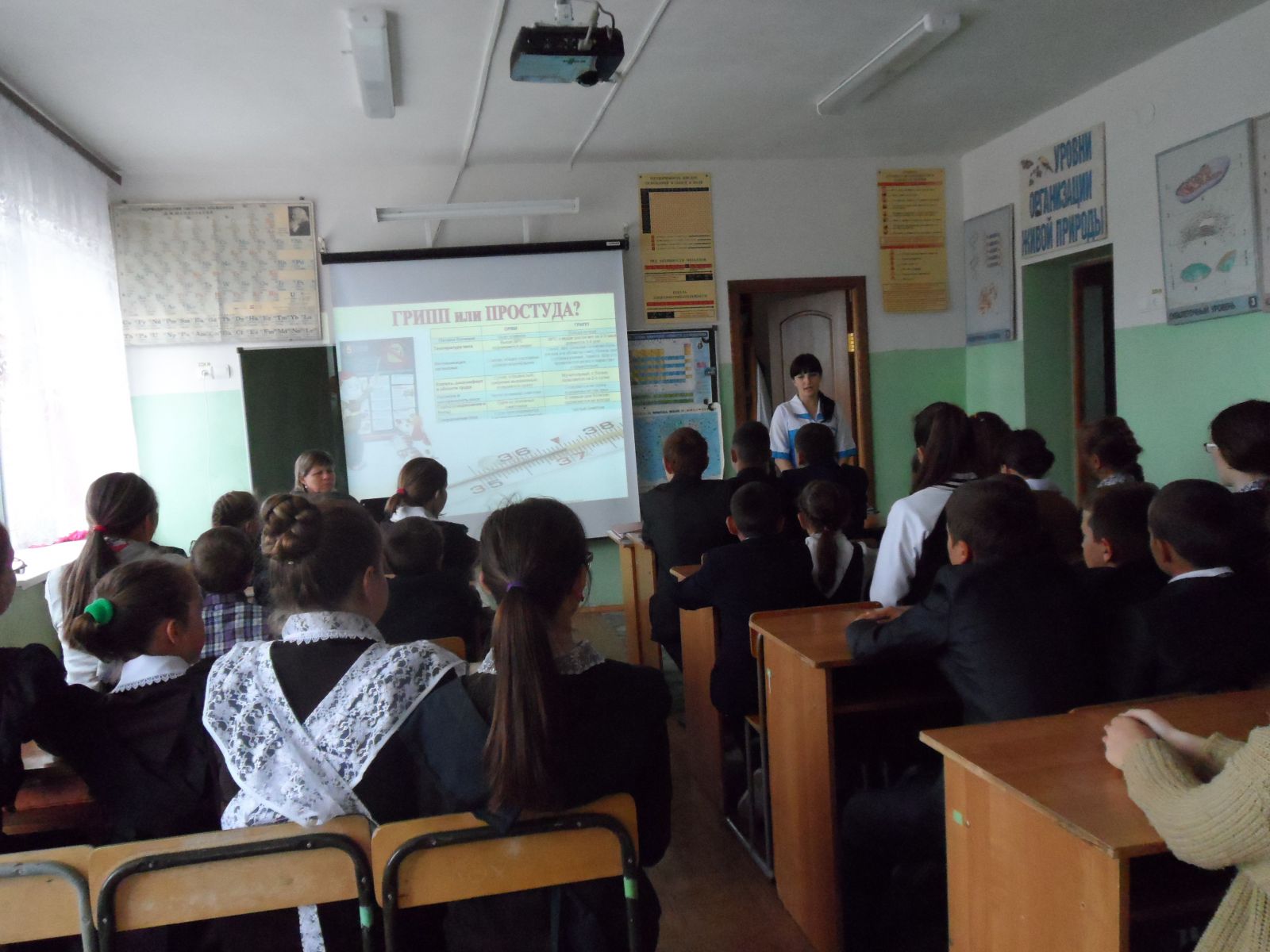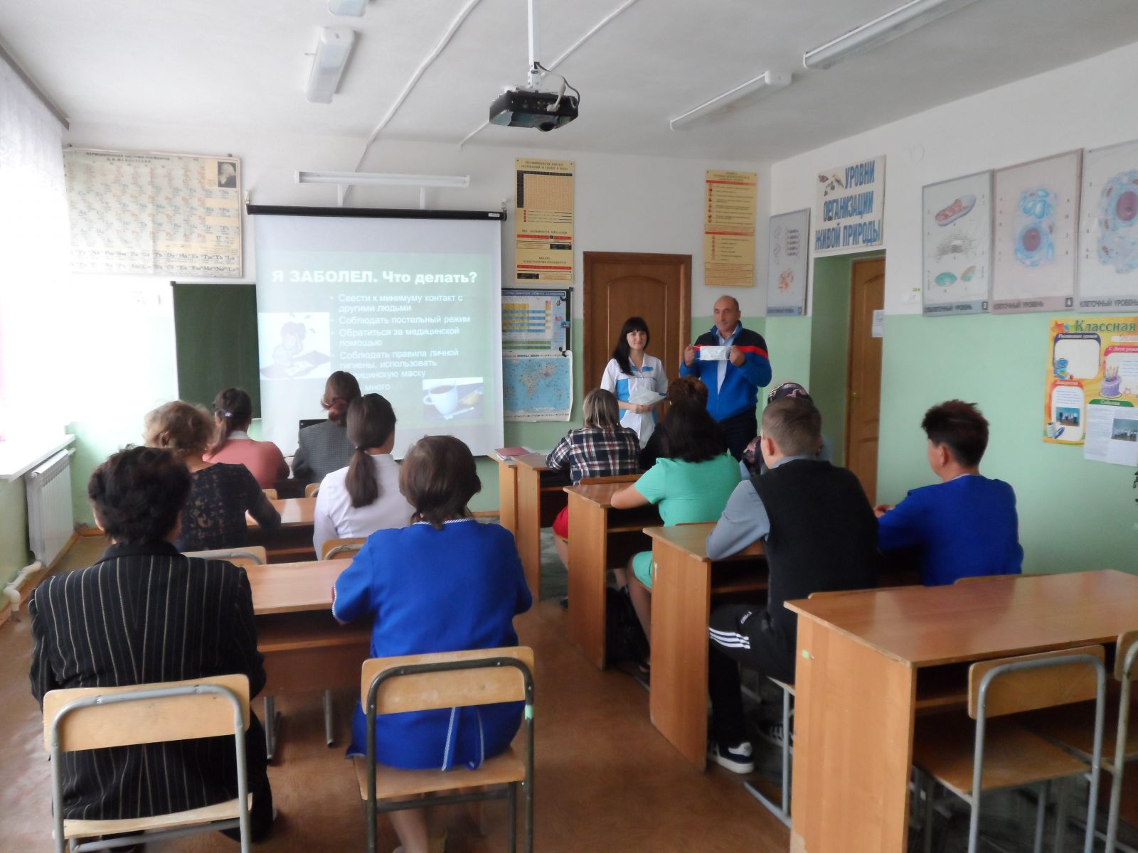В целях профилактики простудно-вирусных заболеваний ОРВИ, ОРЗ и гриппа была организована встреча с мед.работником ЦРБ (нашей выпускницей) Давлетшиной Айгуль. Она рассказала о видах заболеваний, симптомах, профилактике и лечении. Обратила внимание на необходимость вакцинации.