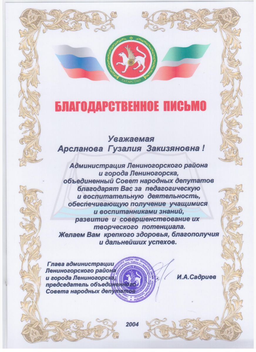 Благодарственное письмо " Ребус" Арсланова Г.З.