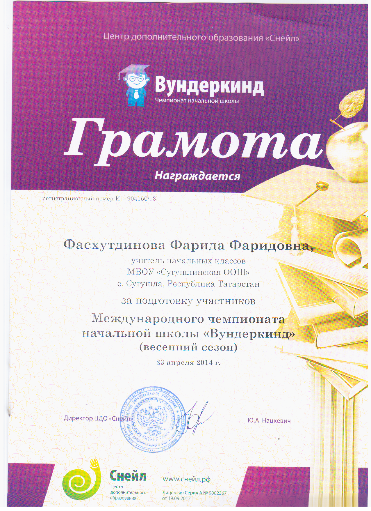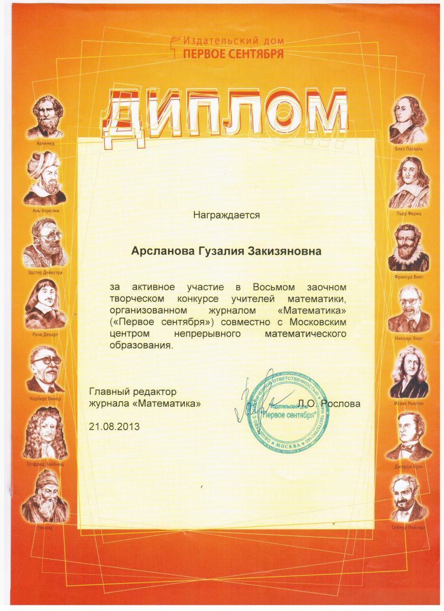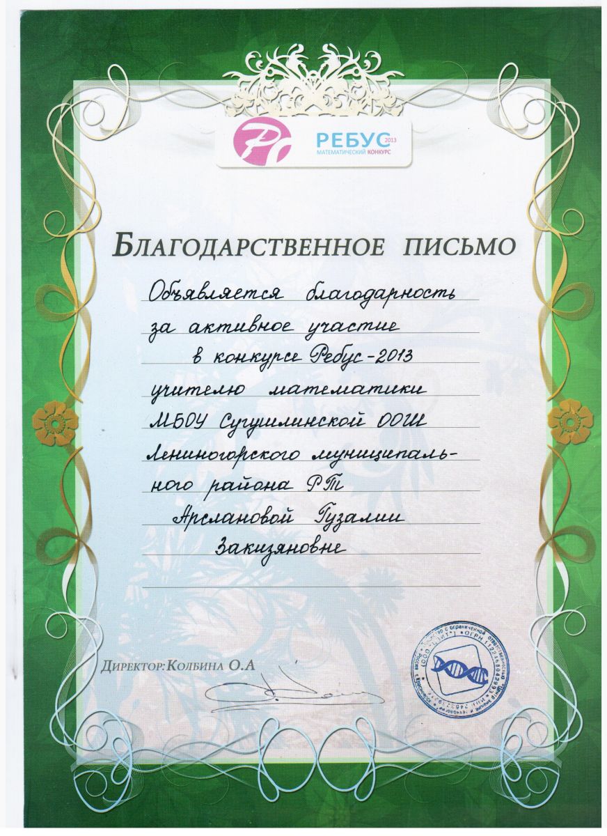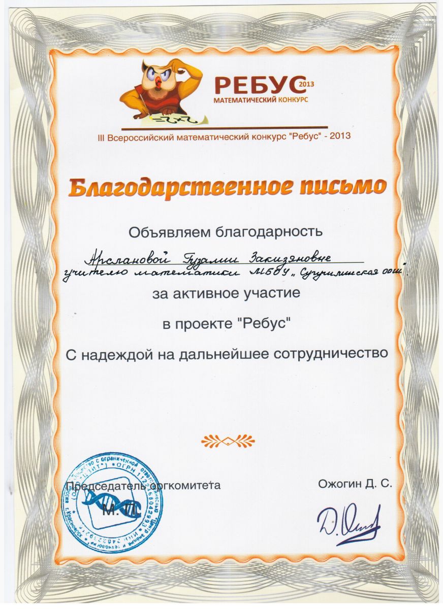 /Благодарственное письмо " Ребус 2013" Арсланова Г.З.
