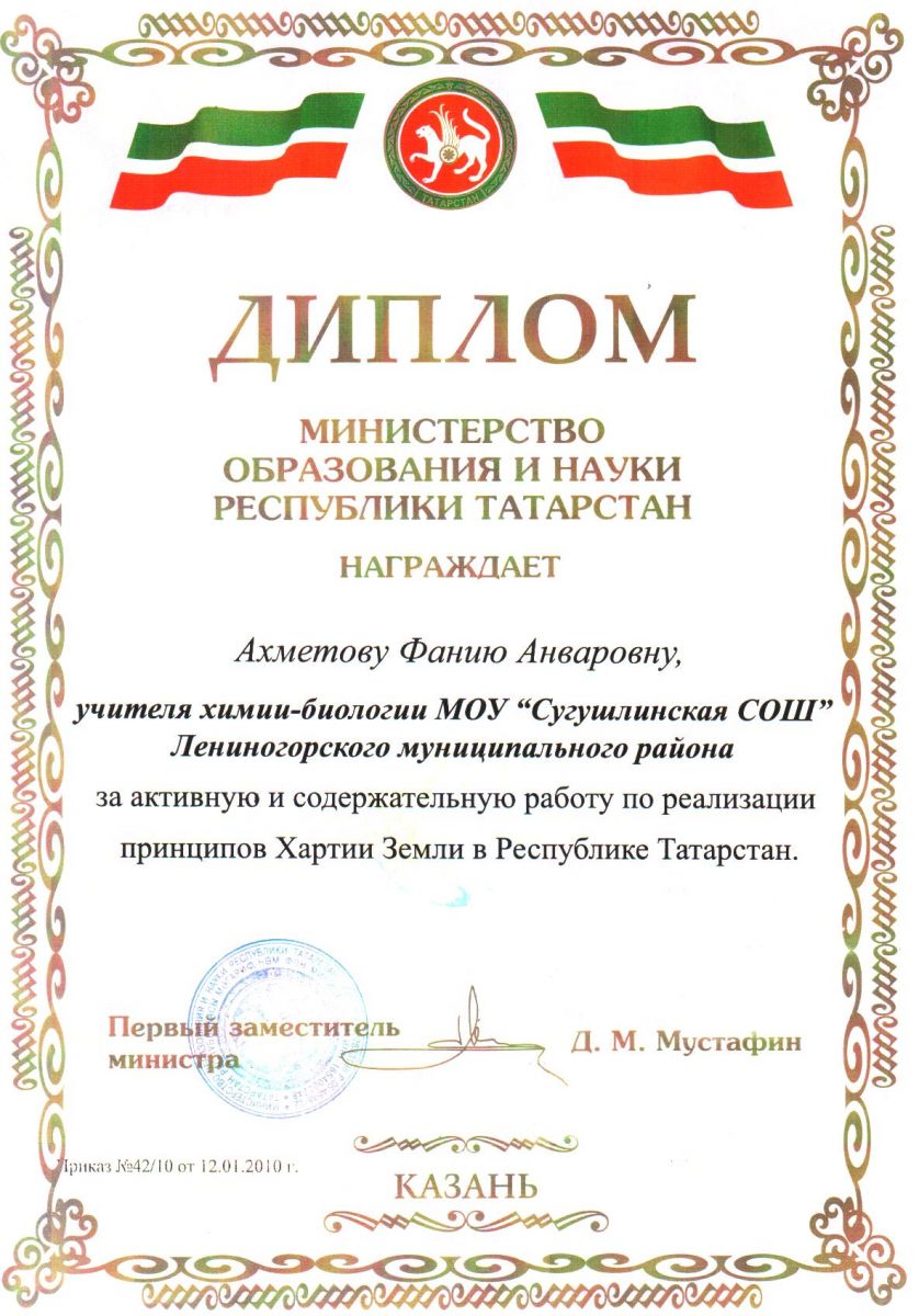 Диплом Хартии ЗемлиАхметова Ф.А.