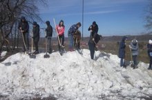 Сегодня в школе в рамках празднования Дня Земли учащиеся 8-10 классов вышли в пришкольный участок школы, раскидывали снег, наводили порядок