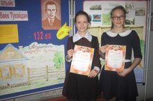 19 апрельдә уздырылган Г.Тукайның тууына 132 ел тулуга багышланган “Милләтемнең кояшы син,и моңлы, нурлы Тукай...” дип исемләнгән муниципаль нәфис сүз бәйгесендә катнашып , Галләмова Миллия (7а сыйныфы) -1 урын, Шәйхиева Айсылу(8а сыйныфы) – 2 урын яуладылар.