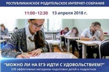 13 апреля с 11.00 до 12.30 состоится республиканское родительское интернет-собрание "Можно ли на ЕГЭ идти с удовольствием"