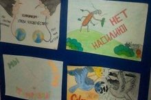 Лучшие работы участников школьного конкурса плакатов "Терроризм и экстремизм - угроза обществу" были выставлены на стенде.