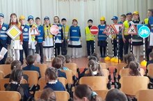 Сегодня отряд ЮИД "Перспективные друзья", выступили с театрализованным представлением "Алиса и Базилио в стране светофора".
