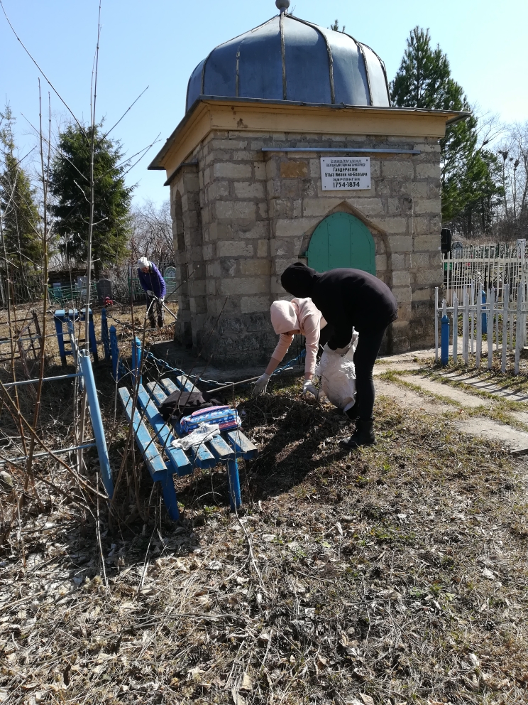 Буген мәшһүр якташыбыз, мәгърифәтче Габдерәхим Утыз Имәни төрбәсе янында җыештыру эшләре оештырылды. Фото1
