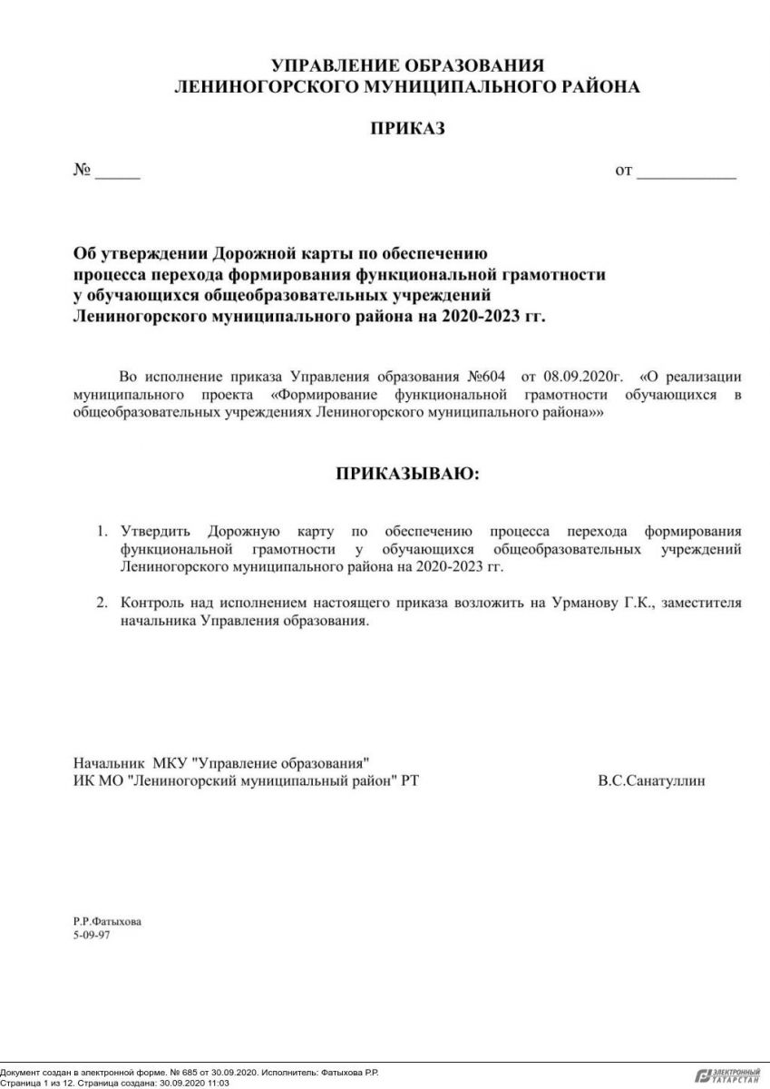 Приказ ОУ об утверждении дорожной карты на 2021-2022 уч_год