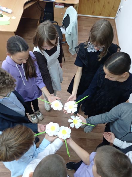 На классном часе ребята познакомились с историей праздника, посмотрели презентацию. Завершился классный час изготовлением символа акции - белого цветка.
