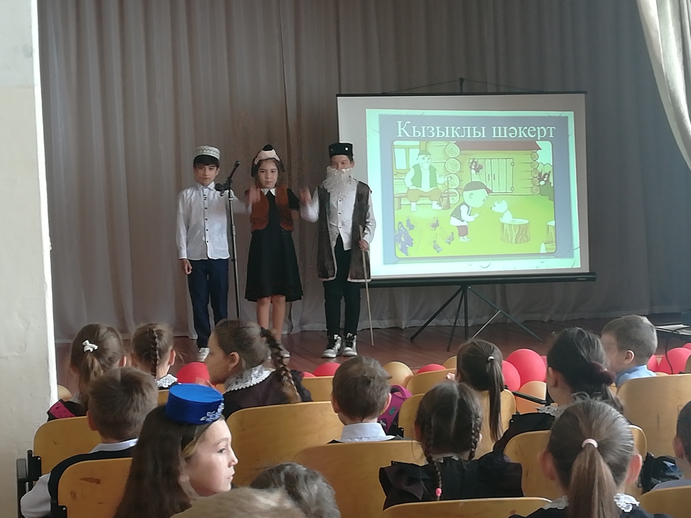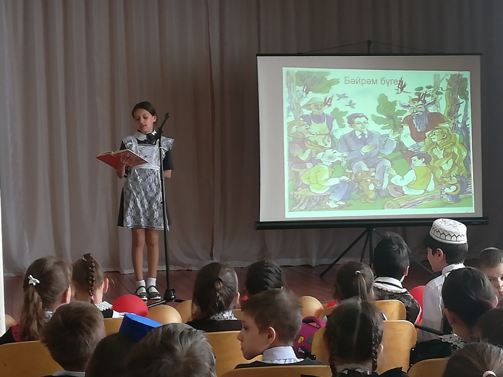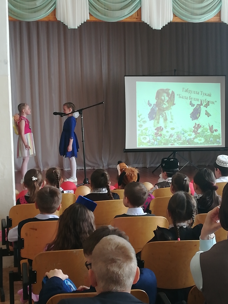 Опубликовано: 27.04.202326 апреля в нашей школе прошел ежегодный театрализованный праздник поэзии “Шигъри дөнья – үзе апрель» , посвященный 137-летию со дня рождения великого татарского поэта Г. Тукая. В празднике участвовали учащиеся 1-8 классов. В программе праздника прозвучали стихи поэта, были показаны театрализованные постановки. Украшением праздника стали песни на стихи Г. Тукая и народные танцы. Праздник завершился исполнением песни “Туган тел”.