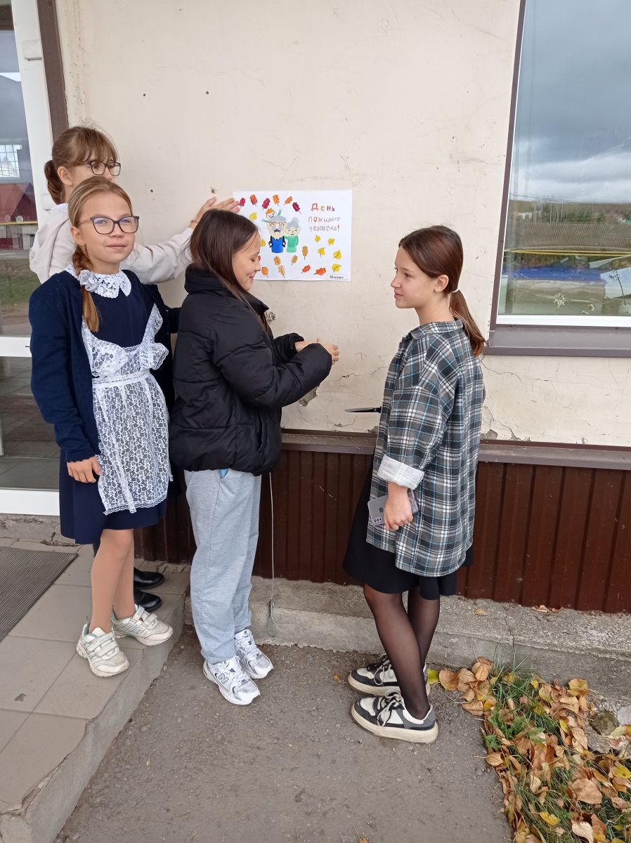 Опубликовано: 02.10.20231 октября отмечается День пожилых людей. В нашей школе прошли мероприятия посвященные этому дню. Ученики нарисовали плакаты и развесили их в местах где обычно бывают наши сельские бабушки и дедушки, сделали открытки и посетили пожилых на дому, в классах прошли классные часы.