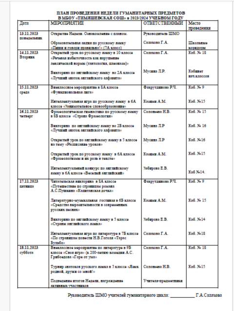 Опубликовано: 13.11.2023С 13 ноября по 18 ноября 2023 года в школе пройдёт неделя предметов гуманитарного цикла.