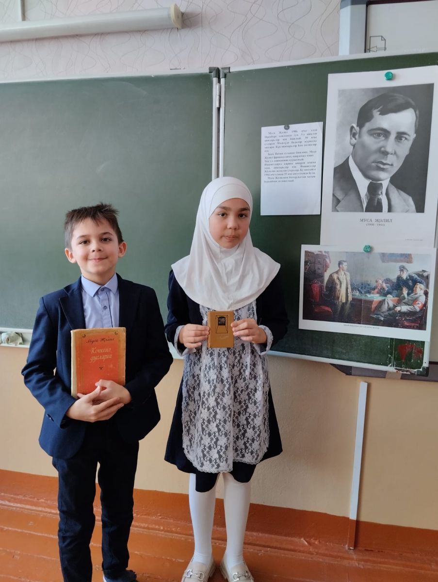 Опубликовано: 22.02.2024В рамках Декады родного языка, во 2а классе прошёл классный час посвященный М.Джалилю. Учащиеся познакомились с жизнью и творчеством героя-поэта, читали стихи, отгадывали названия произведений по детским картинкам. Детям было интересно узнать появления Моабитской тетради.