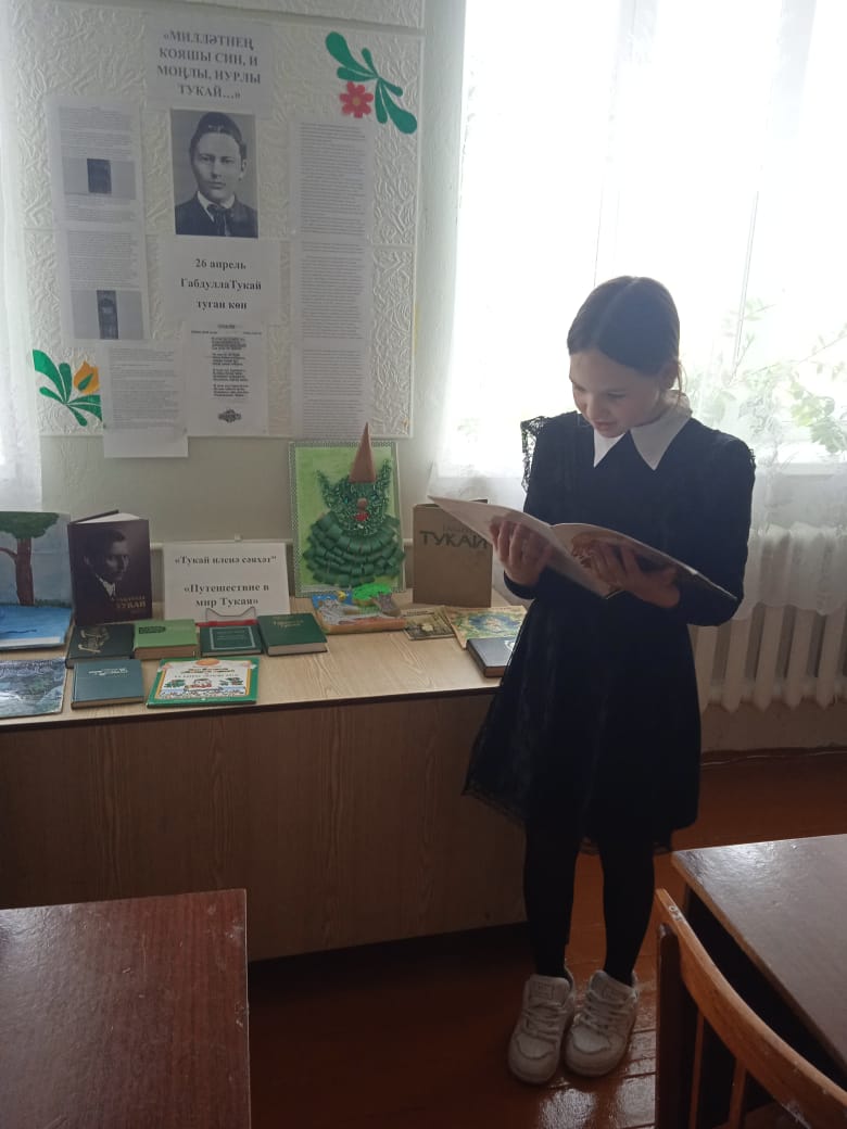 Опубликовано: 26.04.2024Татар халкы үзенең бөек шагыйре Габдулла Тукайны онытмый. Быел яраткан язучыбызның тууына 138 ел. Шул уңайдан мәктәбебездә “Тукай көннәре” уздырыла. Укучыларда Г. Тукайның иҗатына кызыксыну тәрбияләү максатыннан, “Тукайны укыйбыз” акциясе оештырылды.Тәнәфес вакытында укучылар мәктәп китапханәсендә Г.Тукай әсәрләрен кычкырып, сәнгатьле итеп укыдылар, фикер алыштылар.