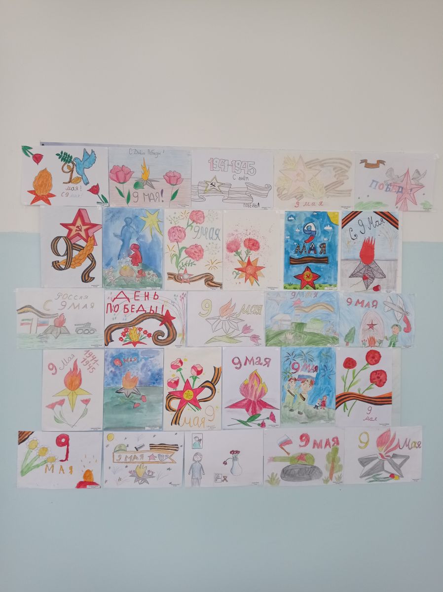 Опубликовано: 07.05.2024В преддверии великого праздника - День Победы, ученики начальных классов оформили выставку рисунков "И помнит май..."