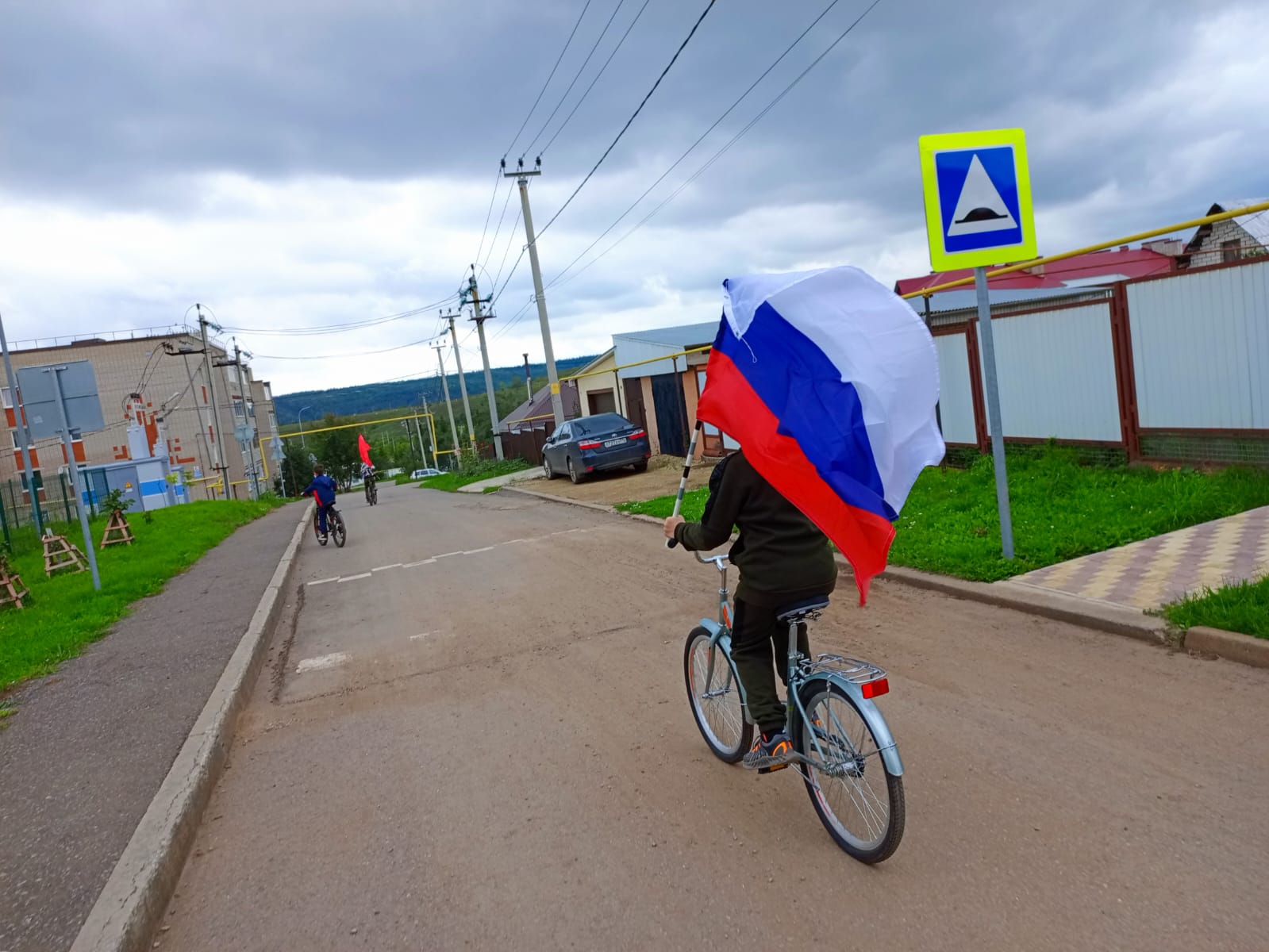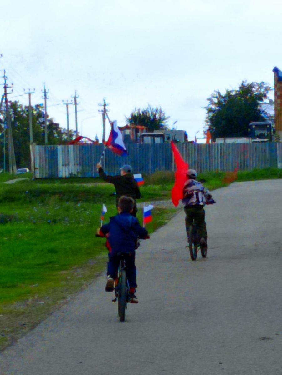 Учащиеся Тимяшевской СОШ приняли участие в велопробеге и с достоинством пронесли флаг России.