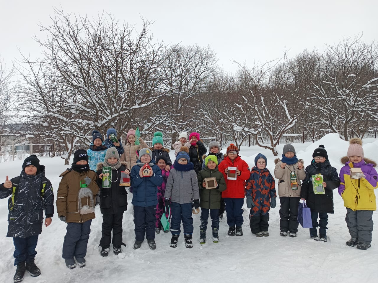 Ученики 1 класса не остались равнодушными. Они изготовили кормушки из разных материалов и повесили их на ветки деревьев в школьном саду. Подкормка зимующих птиц приносит пользу не только пернатым, но и воспитывает в детях заботливое отношение к окружающей среде.