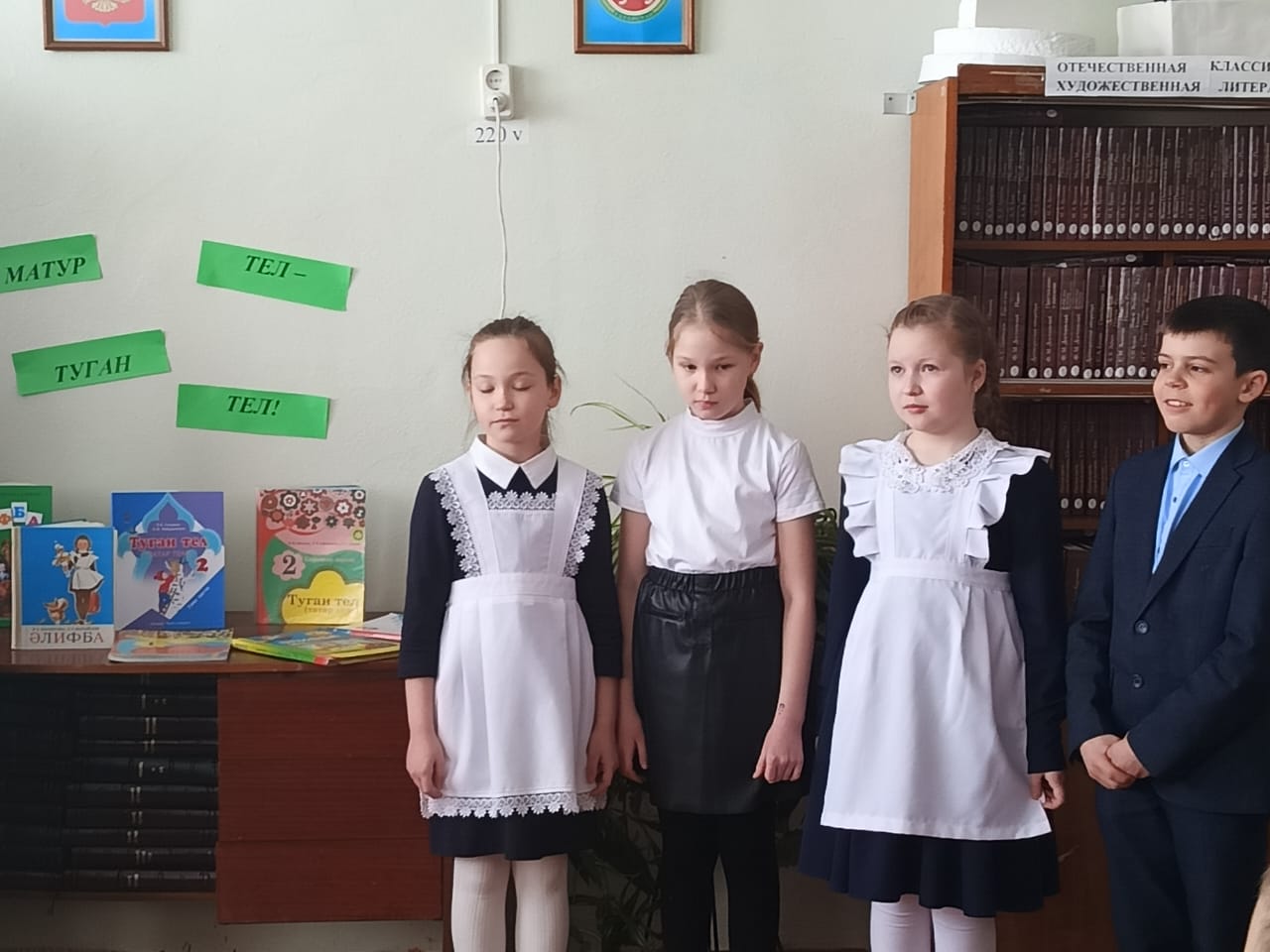 Опубликовано: 21.02.202521 февральдә дөньякүләм туган тел көне билгеләп үтелә. ЮНЕСКО тарафыннан игълан ителгән әлеге халыкара бәйрәм дөньядагы телләрне саклау, аларны киләчәк буынга исән-имин җиткерү макстатыннан оештырыла. Белем йортыбызда да “Иң татлы тел – туган тел” дигән чара оештырылды. Тел турында шигырьләр, мәкальләр белән үрелеп барган, телнең әһәмияте турында сәхнәләштерелгән күренешне яктырткан чарада 3б һәм 8а сыйныф укучылары катнашты. Телебезгә хөрмәт, кызыксыну уятучы бу чарада укучылар үзләренең матур, сәнгатьле сөйләмнәрен күрсәттеләр,тел байлыкларын да арттырдылар. Кичә халкыбызның “Туган тел” җыры белән тәмамланды.