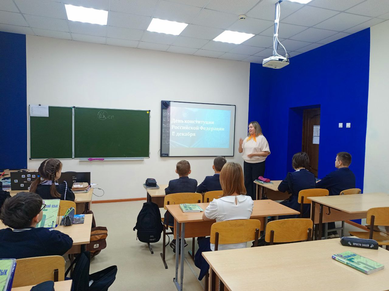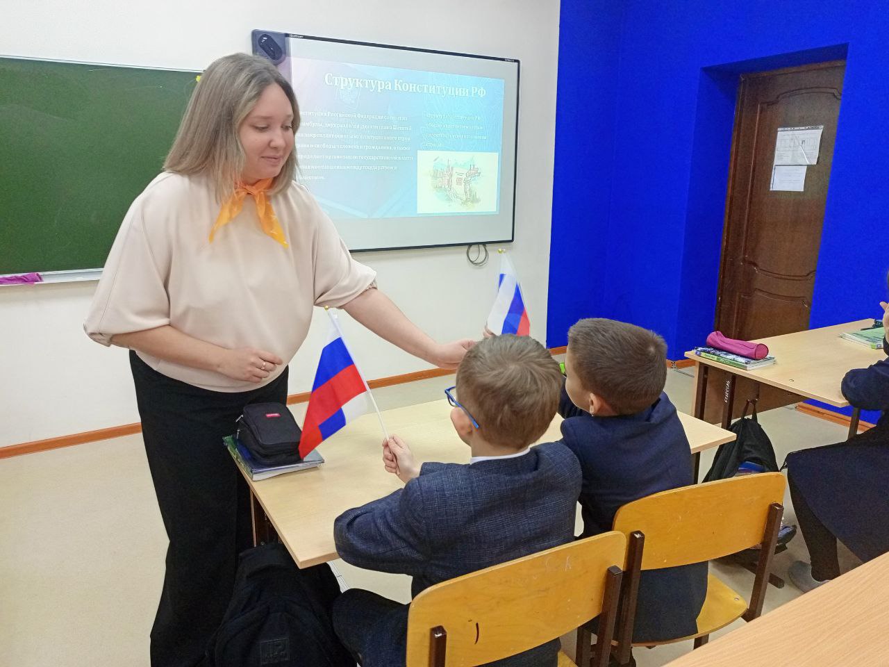 Советником по воспитанию был организован и проведен классный час для 5 класса. Ребята узнали историю Конституции и получили подарки в виде триколора нашей страны.