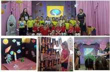 Космос – это интересно, необычно, загадочно! А наша страна имеет особое отношение к этой теме: спутник Земли, Белка и Стрелка и первый человек покоривший космос, Герой Советского Союза летчик-космонавт Юрий Алексеевич Гагарин! Мы с ребятами не оставили без внимания это событие, так как с 8 апреля по 12 апреля в нашем детском саду проходит неделя, посвящённая Дню космонавтики. Всю неделю педагоги беседовали с ребятами о космосе, о знаменитых космонавтах.Дети познакомились с Солнечной системой, в которой находится наша планета Земля, с условиями для существования жизни на планете, узнали о Луне - спутнике Земли. А еще рассматривали иллюстрации с изображением загадочного мира звёзд и планет, читали стихи и отгадывали загадки.Рисовали картинки о космосе, созвездие «Большой медведицы», лепили ракеты, конструировали летательные аппараты. Неделя завершилась интересной , весёлой и познавательной встречей с работниками библиотеки Абдуллиной Ф.Х. и Юнусовой А.М «Наш космос». Ребята совершили виртуальный полет по Солнечной системе и вокруг планеты Земля, убедились, что она самая красивая.