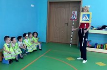 В средней группе в этот период тоже не теряли времени. Используя любое свободное время с пользой , например во время прогулки, пятилетние пешеходы закрепляли правила дорожного движения . Во время бесед в группе они изучали экипировку велосипедистов, изучали запрещающий и предписывающий знак для велосипедистов, изучали опасные дорожные ситуации.