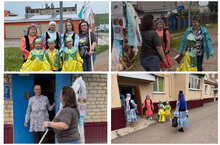 САбАнтуЙ кИлә гӨрлӘп"- традиционный обряд сбора полотенец и подарков к национальному празднику Сабантуй. Педагоги и специалисты Тимяшевского СДК соединили свои усилия и провели прекрасный обряд в нашем селе. С целью сохранения национального фольклора и возрождения исконных традиций татарского народа 4 июня воспитанники с педагогом нашего детского сада вышли на сбор подарков и пригласили всех на национальный праздник Сабантуй. Под задорную татарскую плясовую музыку ребята и взрослые созывали сельчан на праздник и собирали призы и подарки для настоящих Батыров . В старину празднование Сабантуя было большим событием, и к нему долго готовились. Сбор подарков на Сабантуй является веселой традицией этого замечательного праздника. Сбор полотенец — обряд, который проводится у татар перед Сабантуем, и который все люди так ждут. На задорный голос гармони из дома выходят люди и пускаются в пляс вместе с артистами. Обязательно выносят подарки для Сабантуя — это всё больше полотенца, а в старину девушки, вышедшие замуж после Сабантуя, весь год сами вышивали узоры на полотенцах. Они предназначались лучшему батыру: отдавая подарок самому удачливому, загадывали заветное желание. Сбор полотенец и подарков — это как весточка от Сабантуя. Сельчане привязывали подарки к длинному шесту, многие дарили памятные призы на конкурсы, для проведения игр и состязаний на самом празднике.