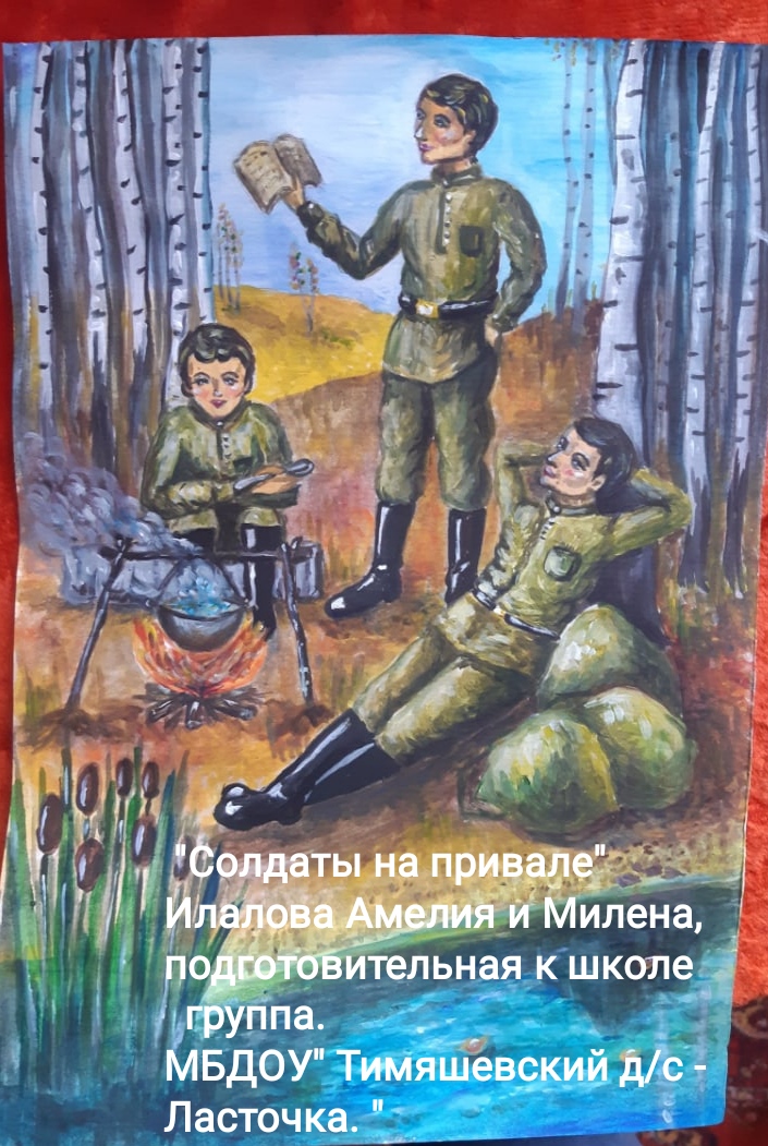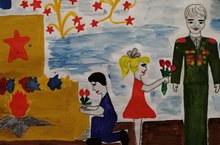 В канун празднования великой Победы в детском саду была организована виртуальная выставка детских работ на тему Великой отечественной войны. Дети рисовали в условиях дома рисунки по данной тематике и присылали педагогам . Затем была организована общая рассылка рисунков по всем группам.
