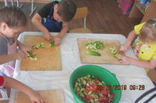 В День огородника дети готовили витаминный салат. Радости и восхищению не было предела. Довольные дети с воспитателями вернулись на свой участок и завершили прогулку игрой «Угадай что собрал» и подвижной игрой «Огуречик». День огородника удался на славу!