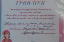 Воспитанница старшей группы Зайнагова Амалия принимала участие в муниципальном конкурсе"Калфаклы йолдызчык". -