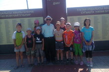 Мәктәп яны “Кояшкай” лагерына йөрүче балалар бүген авылыбызның бердәнбер сугыш ветераны Хөснетдинов К.Г. улы белән очраштылар. Бөек Ватан сугышында һәлак булган авылдашларыбыз хөрмәтенә авылыбыз обелискына чәчәкләр куйдылар һәм утыртылган чәчәкләргә су сиптеләр. -