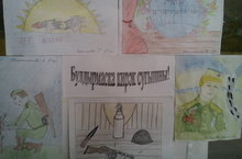 5-6 класс укучылары Җиңүнең 70 еллыгына "Булдырмаска кирәк сугышны" темасына рәсемнәр ясадылар. Иң актив укучыларның рәсемнәре күргәзмәгә куелды.